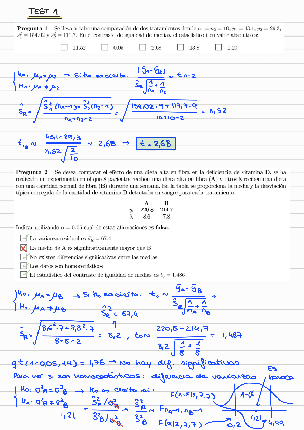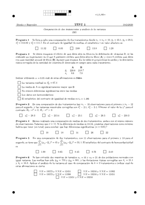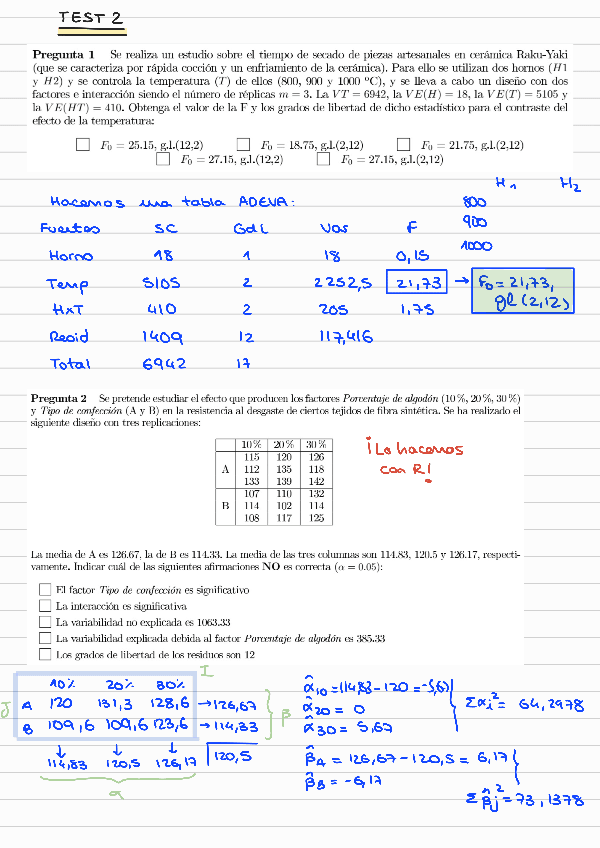 He publicado nuevos examenes de 2º Diseño de Experimentos y Modelos de Regresión: test1-Solucion.pdf