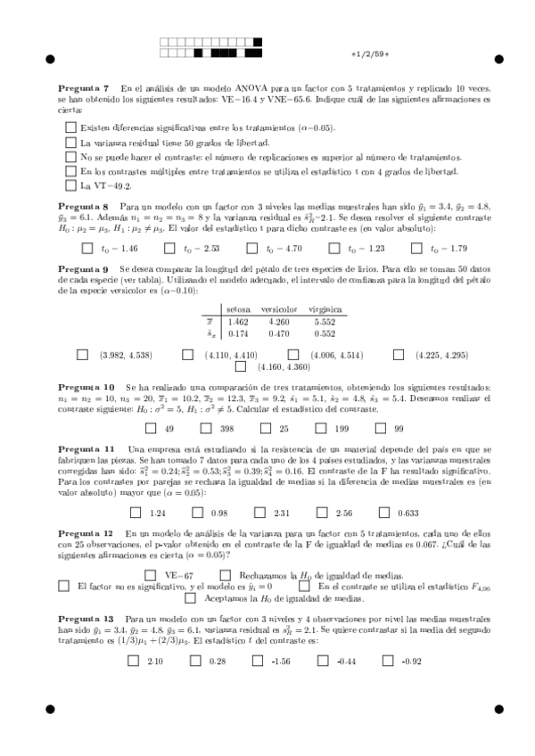 He publicado nuevos examenes de 2º Diseño de Experimentos y Modelos de Regresión: examensolucion.pdf
