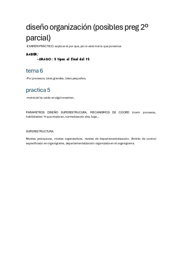 He publicado nuevos apuntes de 2º Diseño de la Organización: Tema04ParametrosDisenoSuperestructura.docx