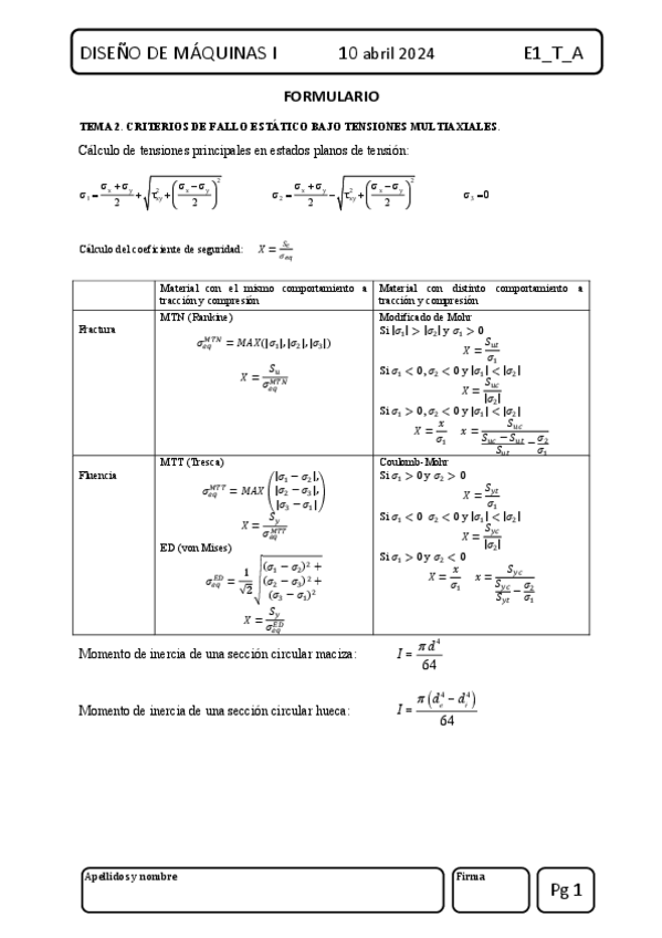 Apuntes - Apuntes y Ejercicios de Criterios de fallo estático bajo tensiones multiaxiales.pdf