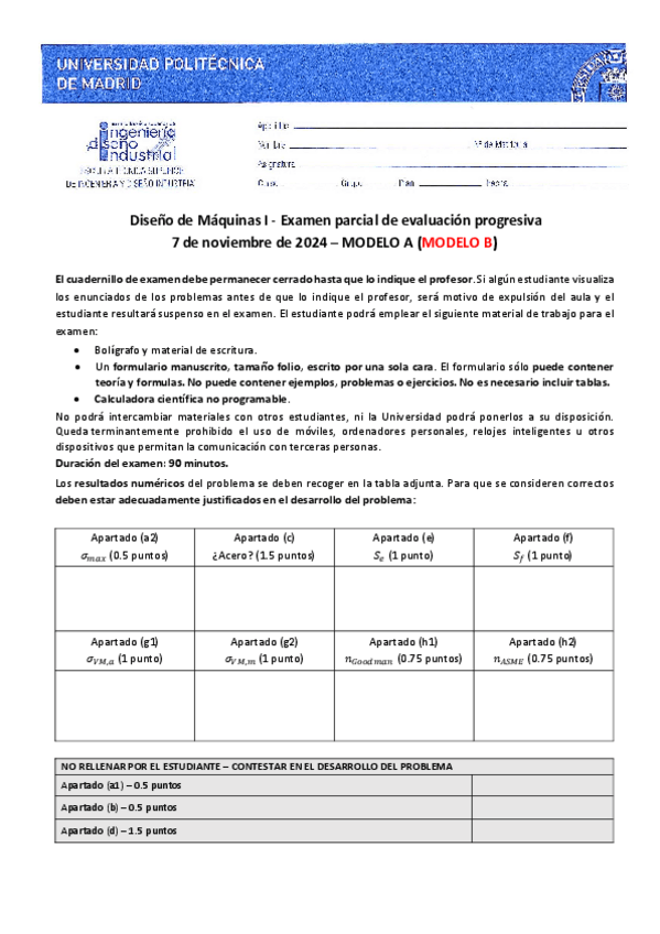 He publicado nuevos examenes de 3º Diseño de Máquinas I: Correccion-parcial-continua-2425-clase.pdf