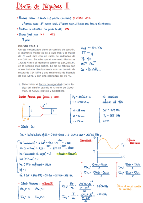 Todos los ejercicios resueltos y explicados Diseño de Máquinas II