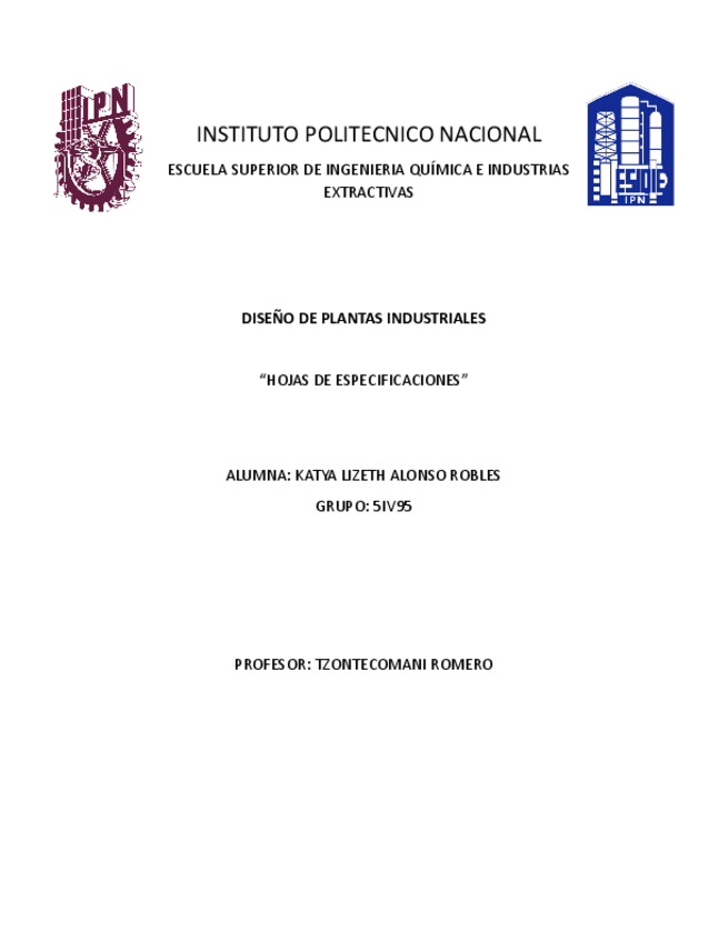 He publicado nuevos trabajos de 5º Diseño de Plantas Industriales: hojasdeespecificaciones.pdf