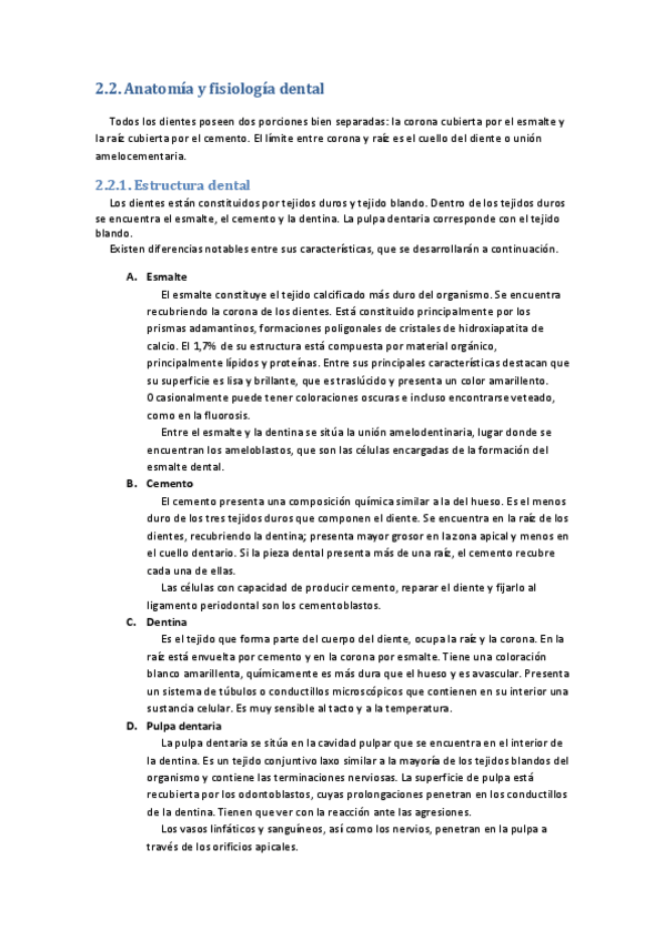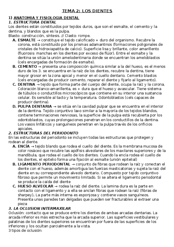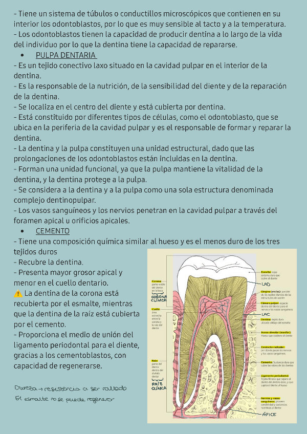 Resumen de los tejidos del diente