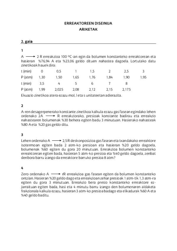 He publicado nuevos ejercicios de 3º Diseño de Reactores: 2-Partzial-Ariketak.pdf
