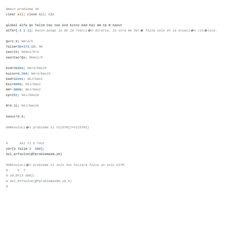 He publicado nuevos ejercicios de 3º DISEÑO DE REACTORES I: solutionproblem51.m