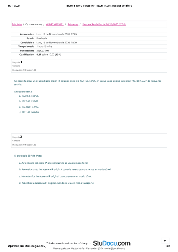 He publicado nuevos examenes de 4º Diseño de Redes: 20-21examen1parteSOLUCIONES.pdf