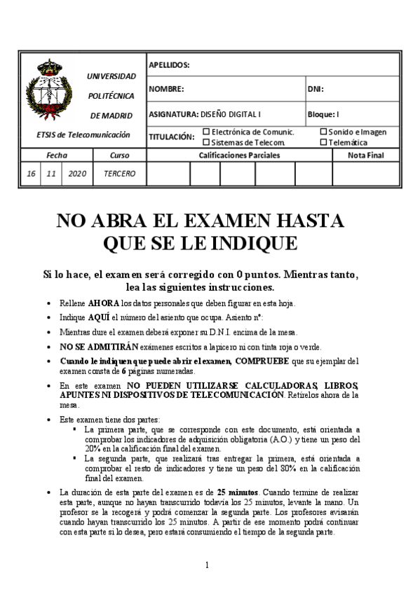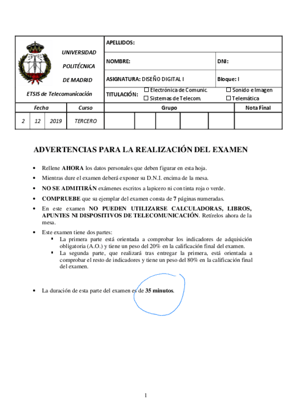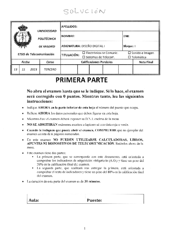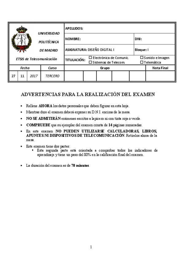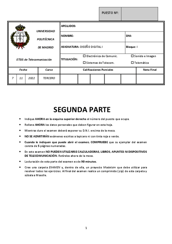 He publicado nuevos examenes de 3º Diseño Digital I: BT1 - NOV 2021