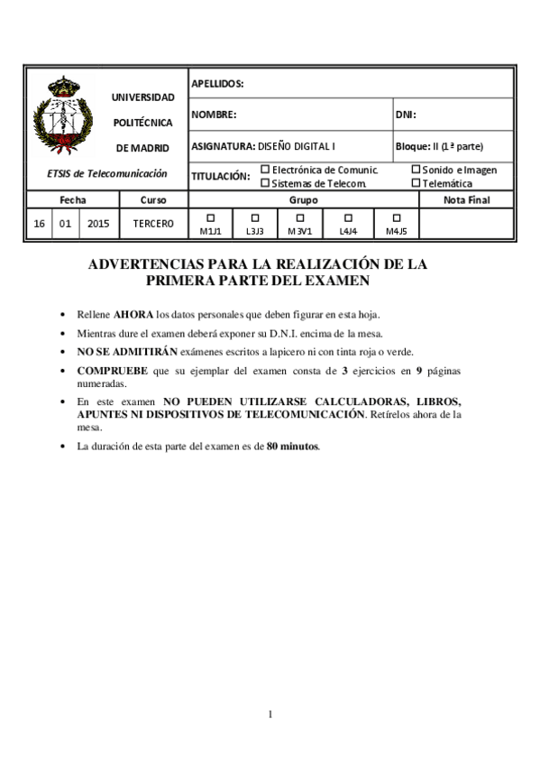 He publicado nuevos examenes de 3º Diseño Digital I: EXAMENES DD1