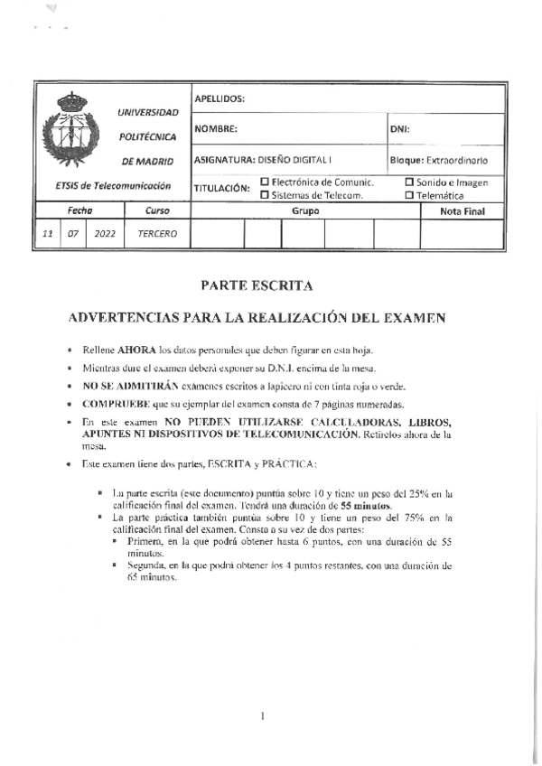 He publicado nuevos examenes de 3º Diseño Digital I: Julio 2022