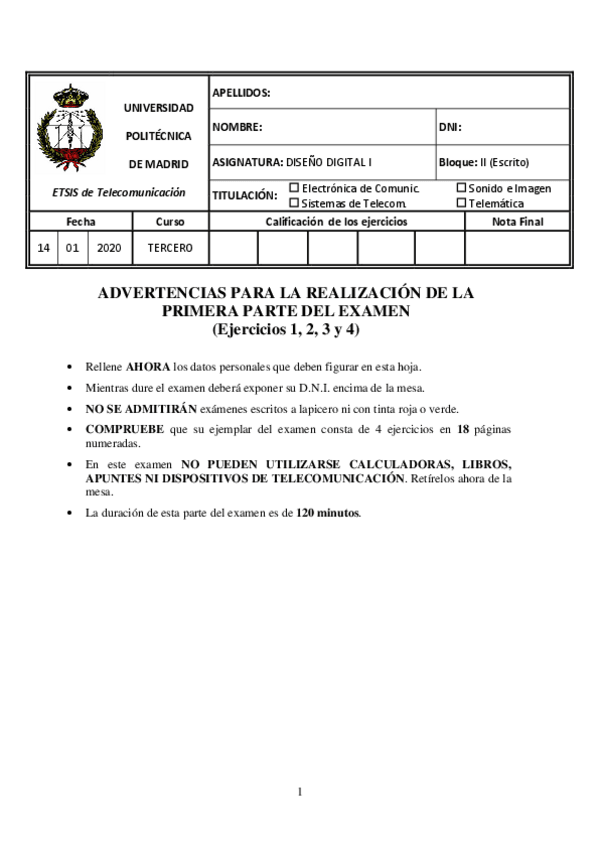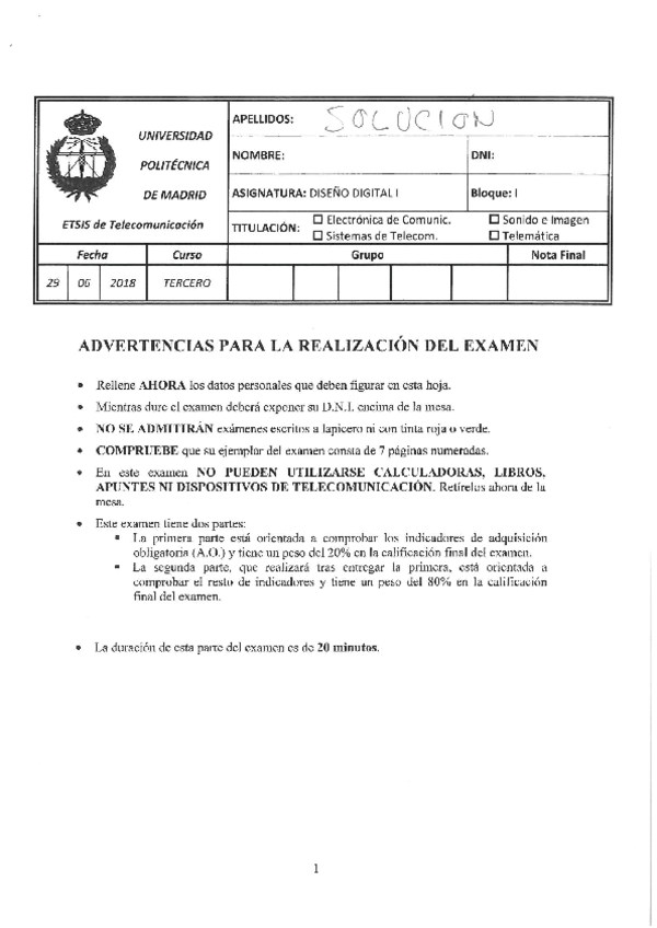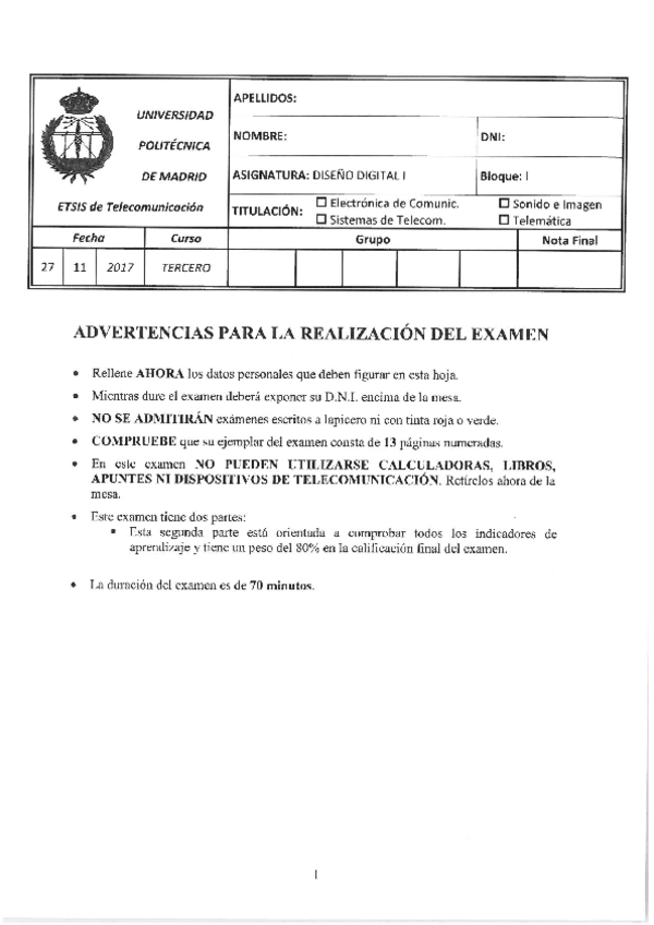 He publicado nuevos examenes de 3º Diseño Digital I: Diseño Digital I