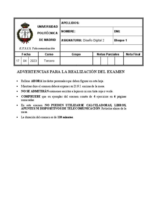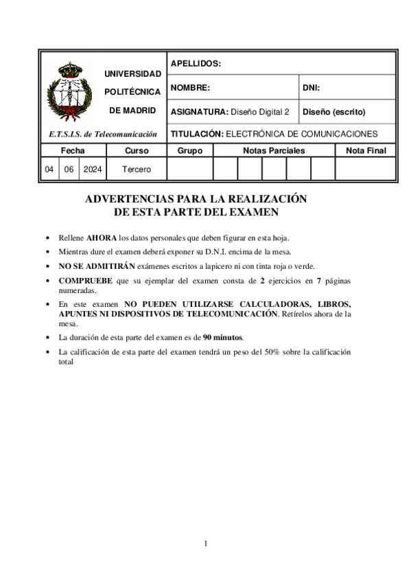 He publicado nuevos examenes de 3º Diseño Digital II: Examenextraordinario2022.pdf