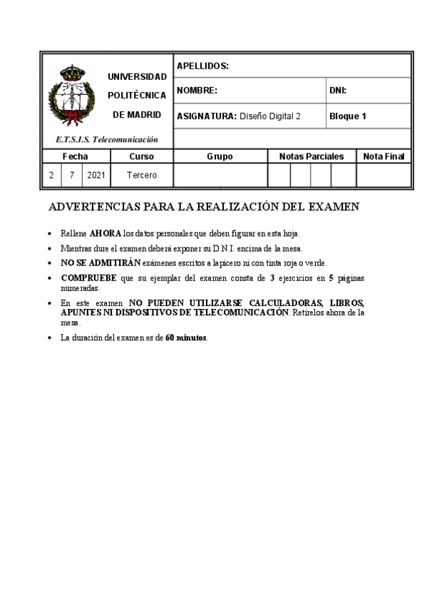 He publicado nuevos examenes de 3º Diseño Digital II: Bloque 1 - Examen 2021