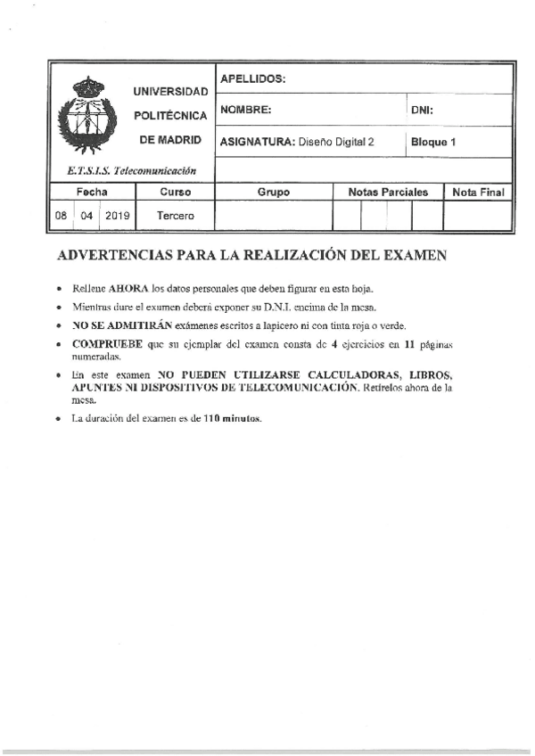 He publicado nuevos examenes de 3º Diseño Digital II: Examenabril2020.pdf