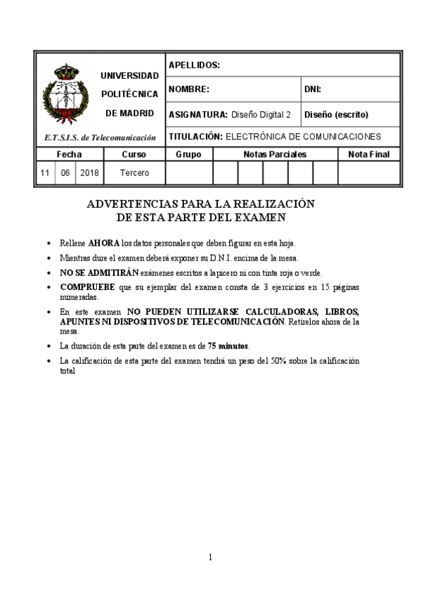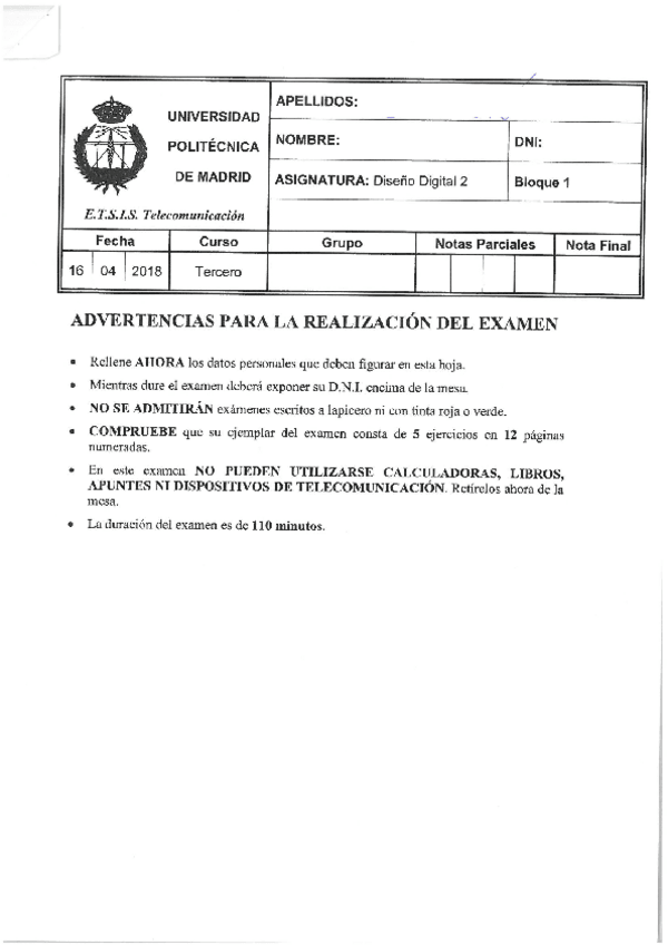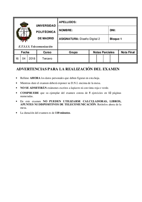 He publicado nuevos examenes de 3º Diseño Digital II: Bloque 2 - Examen 2018