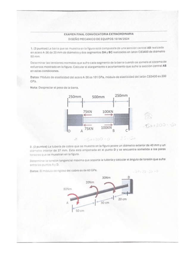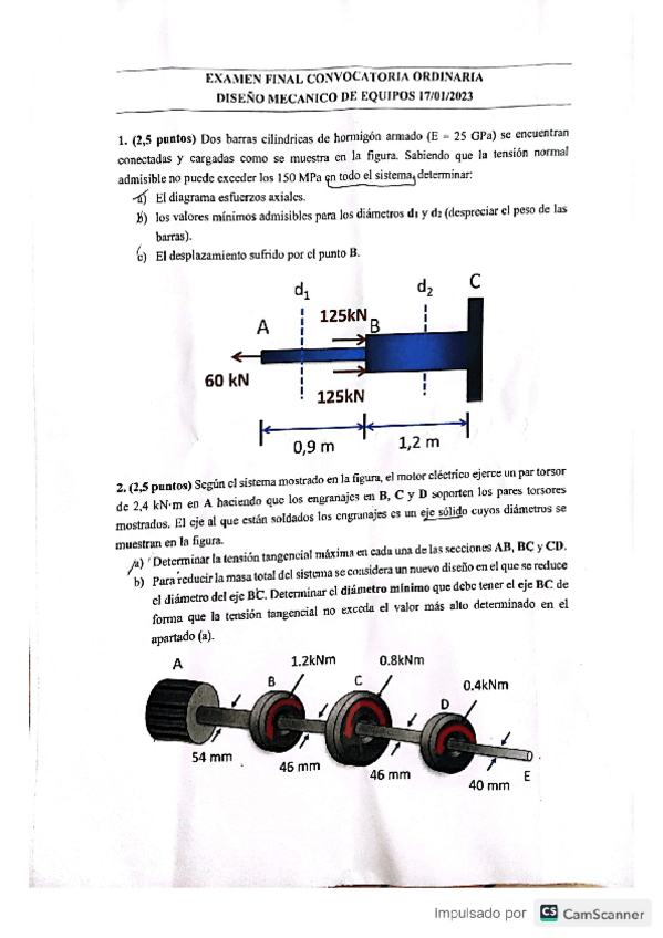 He publicado nuevos examenes de 3º Diseño Mecánico de Equipos: Examen-Final-DME-2023-24.pdf