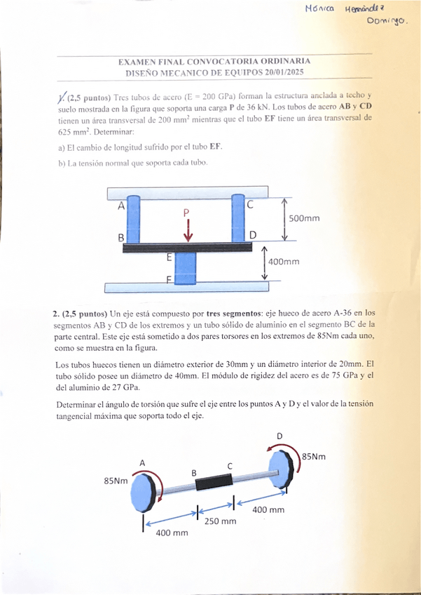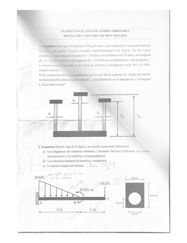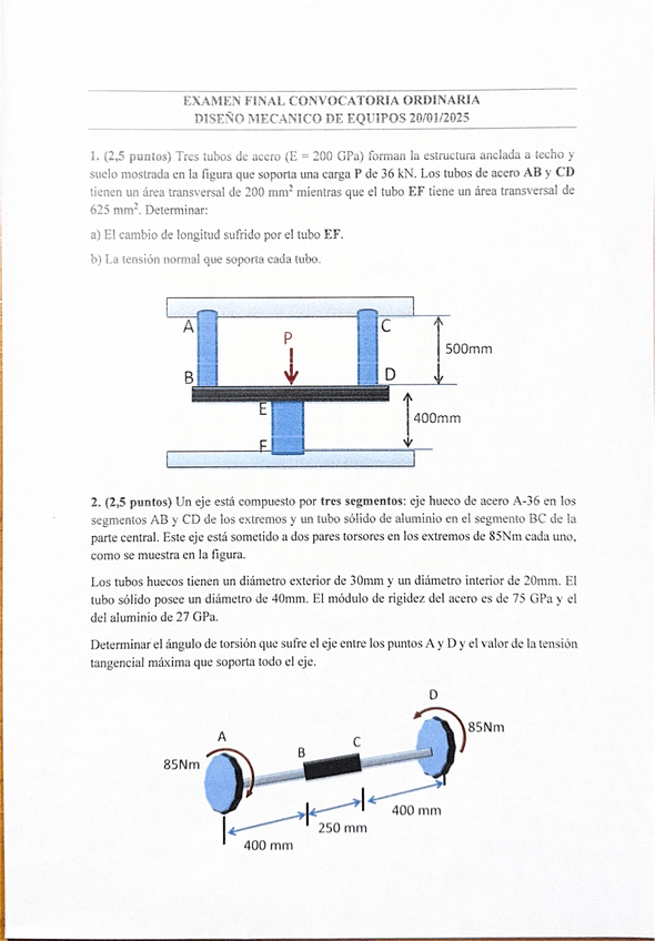 He publicado nuevos examenes de 3º Diseño Mecánico de Equipos: examen-enero-2025.pdf