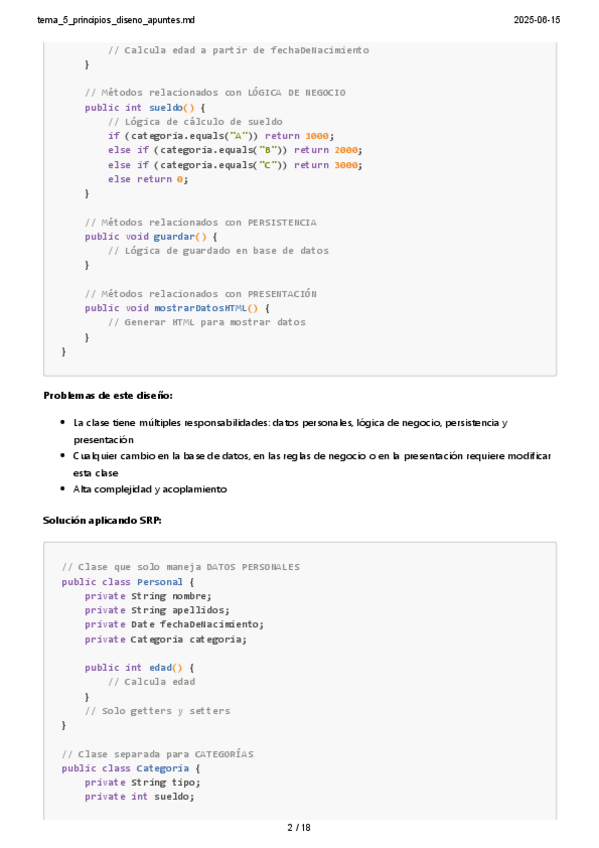 He publicado nuevos apuntes de 2º Diseño Software: Single-responsibility-principle.pdf