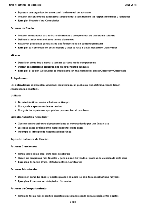 He publicado nuevos apuntes de 2º Diseño Software: T6-Patrones-de-diseno.pdf