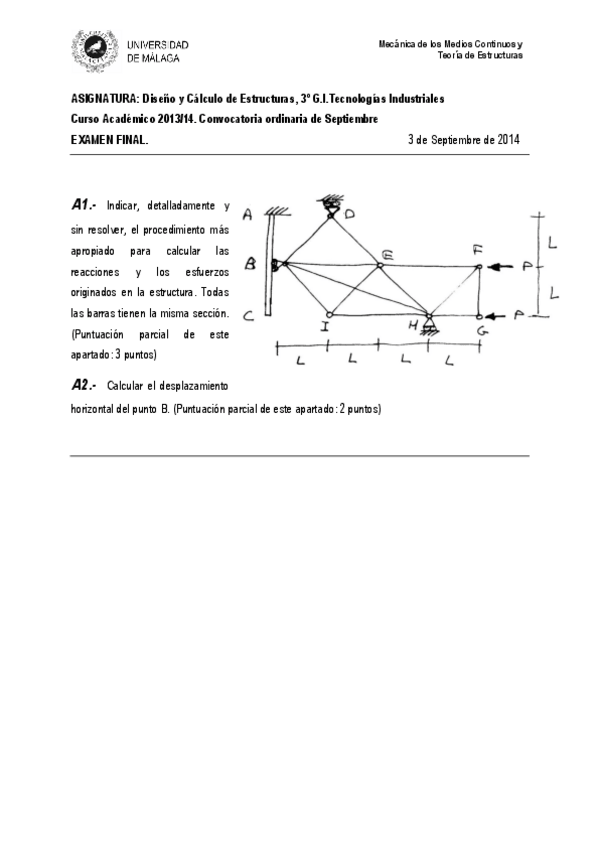 He publicado nuevos examenes de 3º Diseño y Cálculo de Estructuras: Julio-2014.pdf