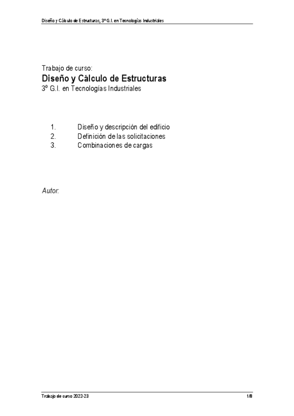 He publicado nuevos trabajos de 3º Diseño y Cálculo de Estructuras: Trabajo 1. Trabajo de cargas. Nota: 10