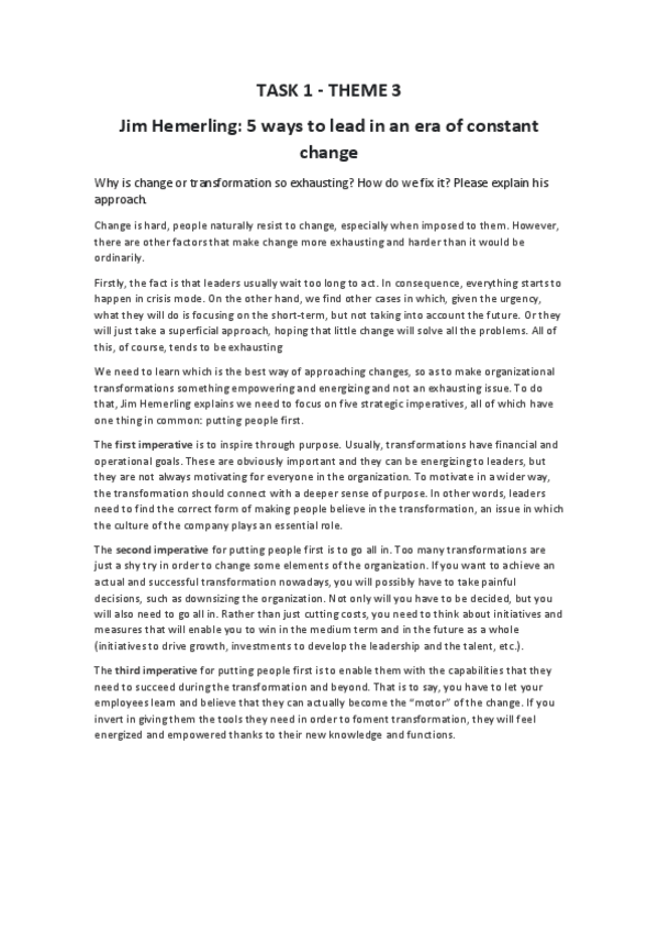 He publicado nuevos ejercicios de 5º Diseño y Cambio Organizativo: Task-1-Theme-7.pdf
