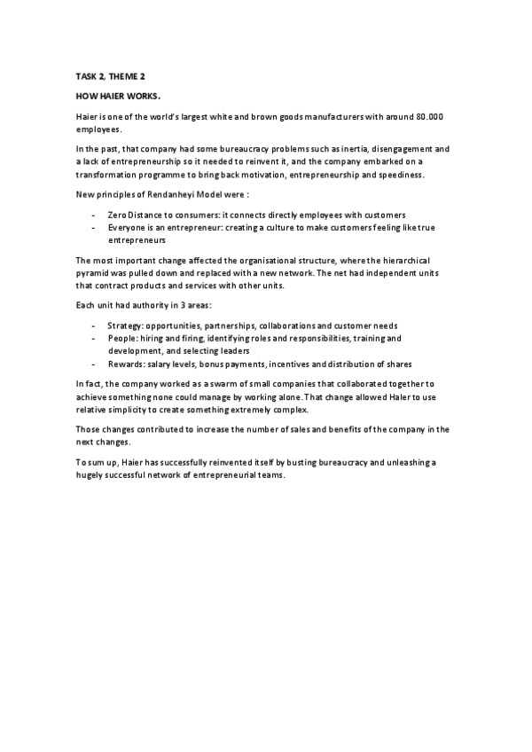 He publicado nuevos ejercicios de 5º Diseño y Cambio Organizativo: TASK-2-THEME-2.pdf