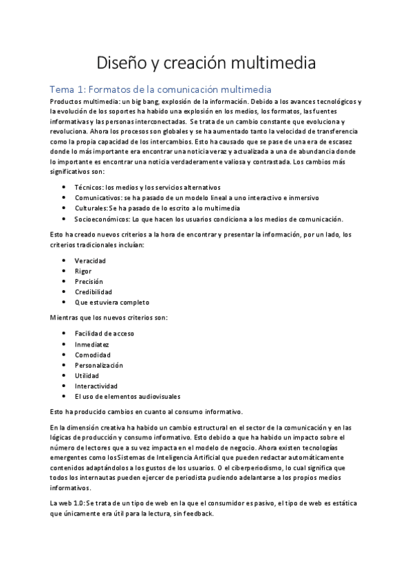 Diseño y creación Multimedia - Teoría