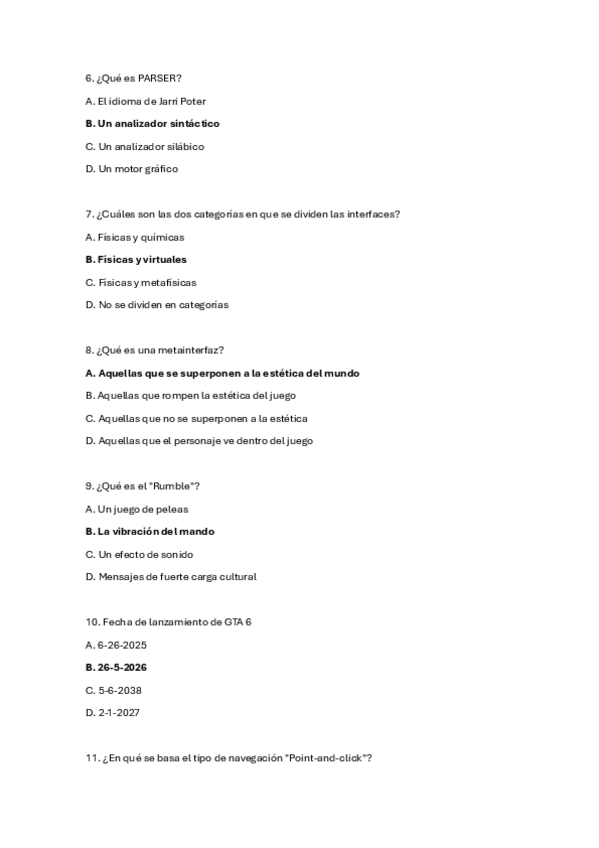 He publicado nuevos examenes de 4º Diseño y Realización de Videojuegos: Preguntas-examen-videojuegos.pdf
