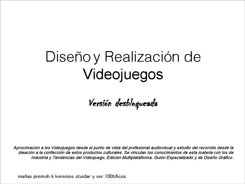 He publicado nuevos apuntes de 4º Diseño y Realización de Videojuegos: Diseno-de-videojuegos-de-Juan-P.pdf