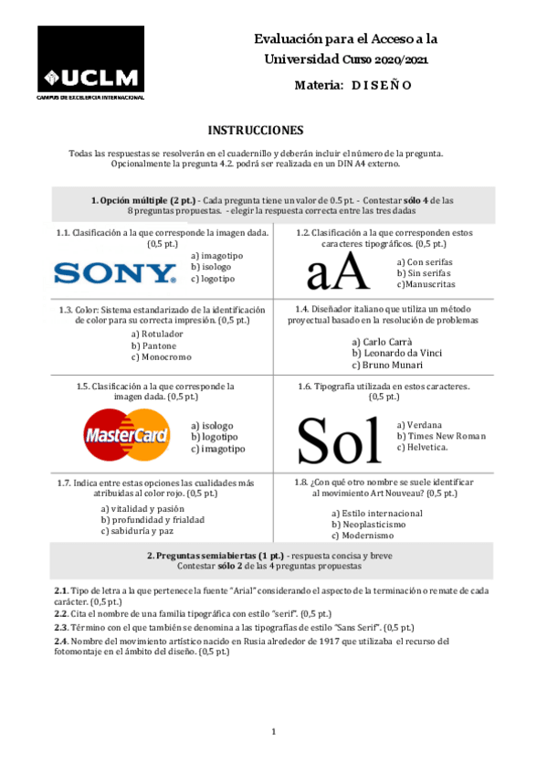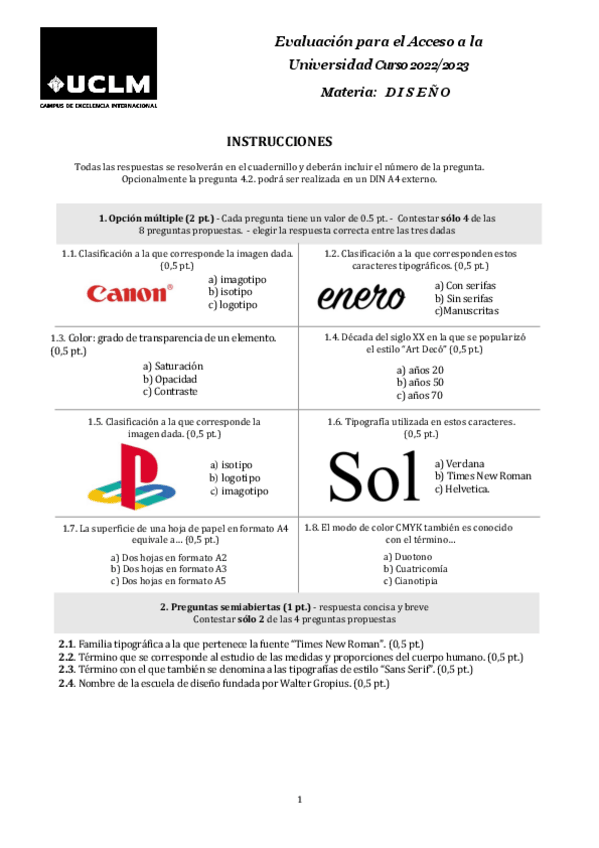 He publicado nuevos examenes de Diseño: Modelos anteriores EVAU Diseño
