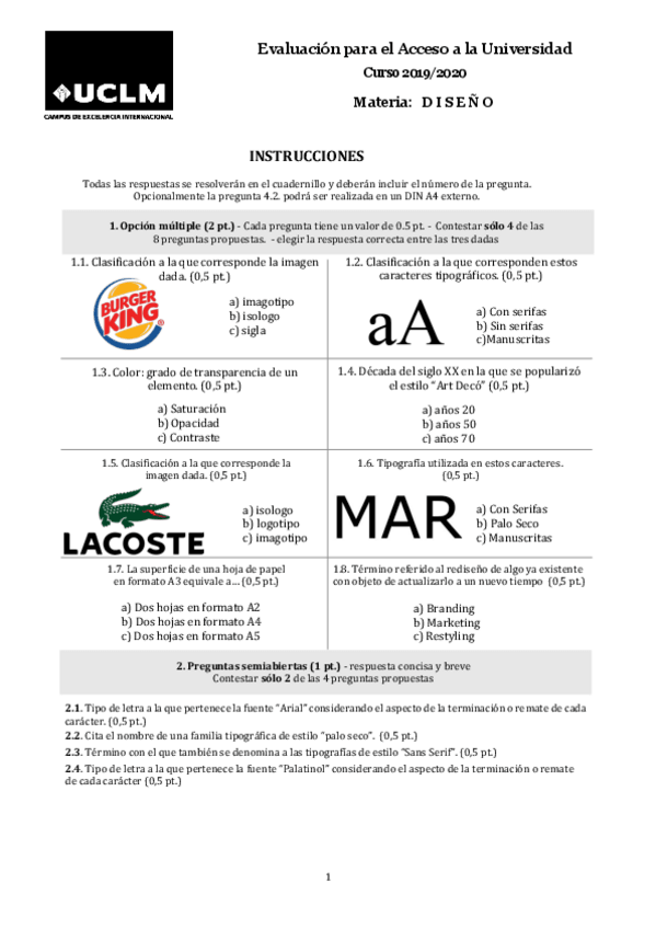 He publicado nuevos examenes de Diseño: Ebau examen diseño 2018-2019