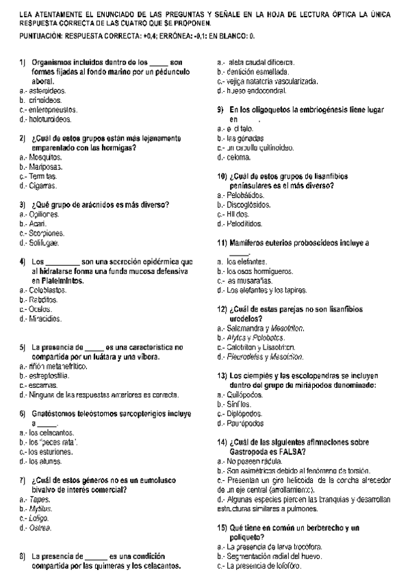 Exámenes Diversidad Animal