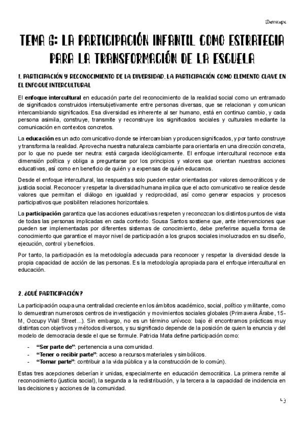 He publicado nuevos apuntes de 1º Diversidad Cultural y Equidad en la Escuela: Tema-6-La-participacion-infantil-como-estrategia-para-la-transformacion-de-la-escuela..pdf