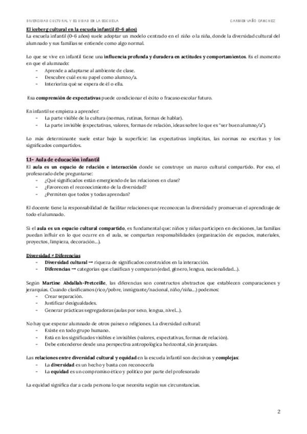 Resumen completo de Diversidad Cultural y Equidad en la Escuela del Grado de Educación Infantil en la UNED. Año 2023-2024.