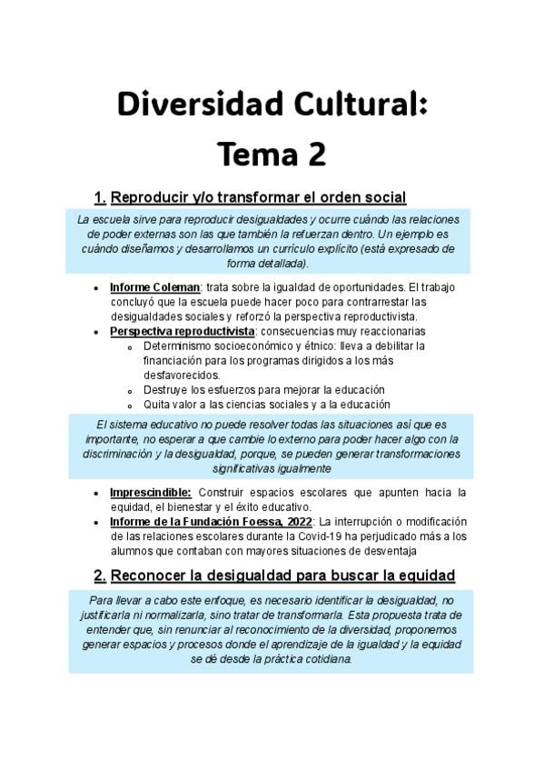 He publicado nuevos apuntes de 1º Diversidad Cultural y Equidad en la Escuela: Tema 2 Diversidad cultural y equidad en la escuela.pdf