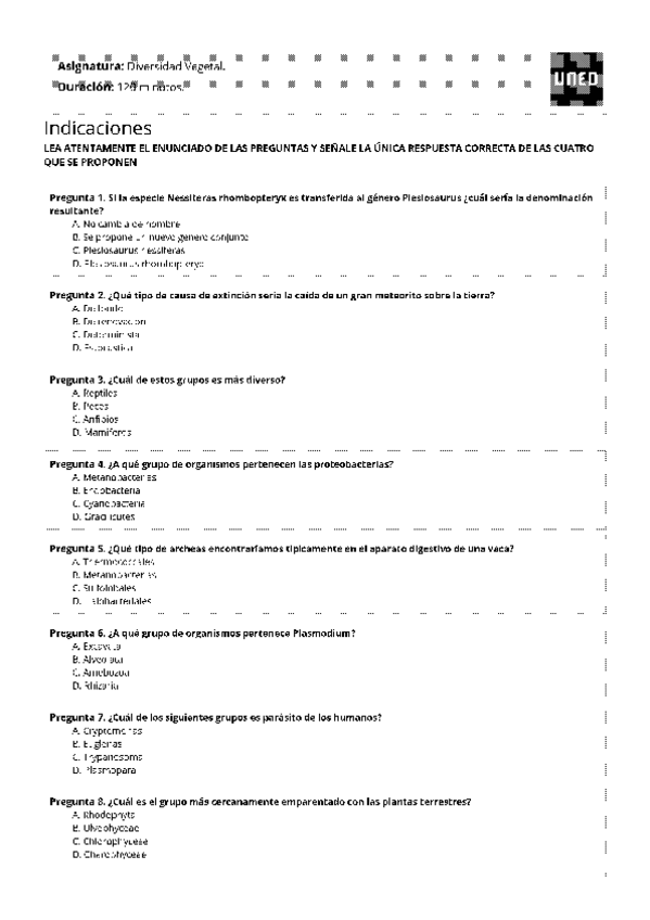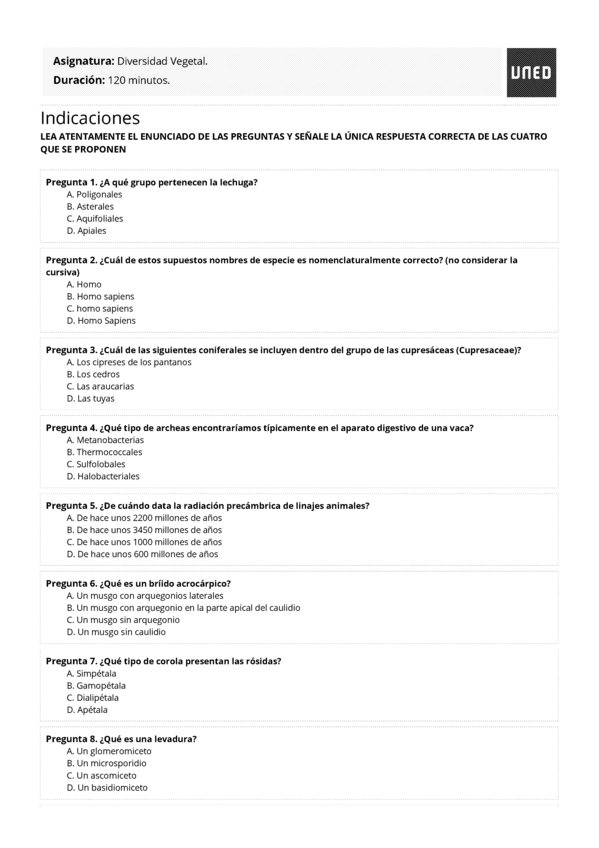 Exámenes Diversidad Vegetal