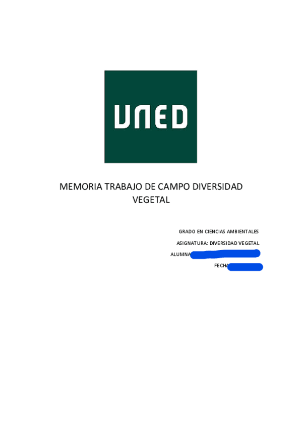 He publicado nuevos trabajos de 2º Diversidad Vegetal: Memoria de campo diversidad vegetal