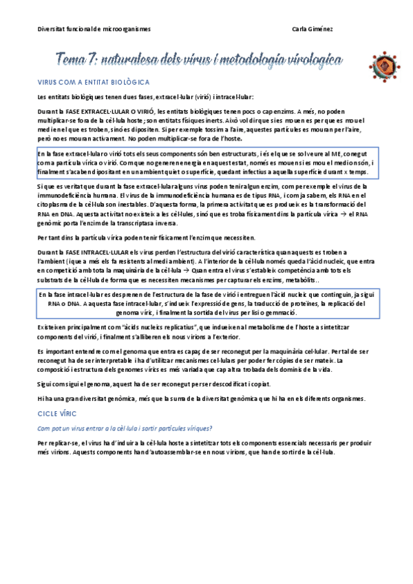 He publicado nuevos apuntes de 3º Diversitat Funcional de Microorganismes: Virus apunts