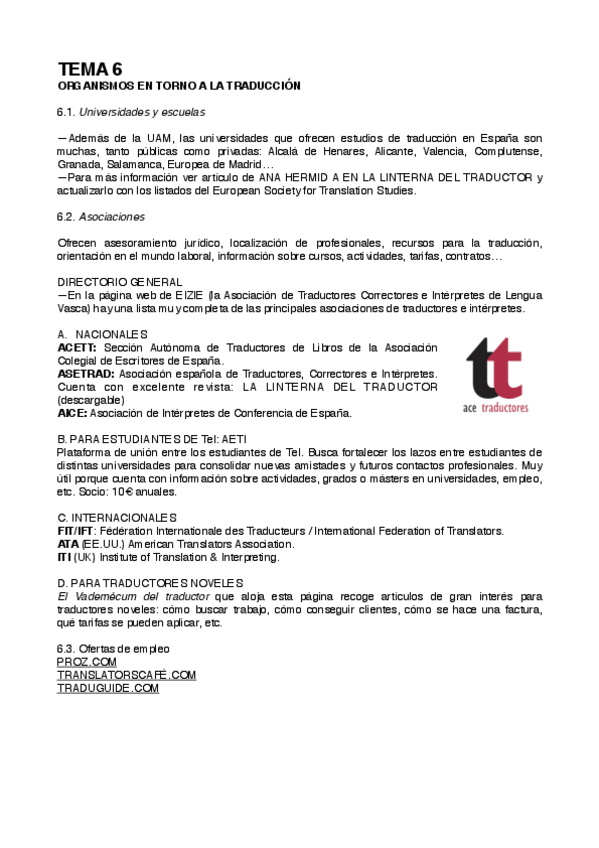 He publicado nuevos apuntes de 1º Documentación Aplicada a la Traducción: TEMA 6.docx