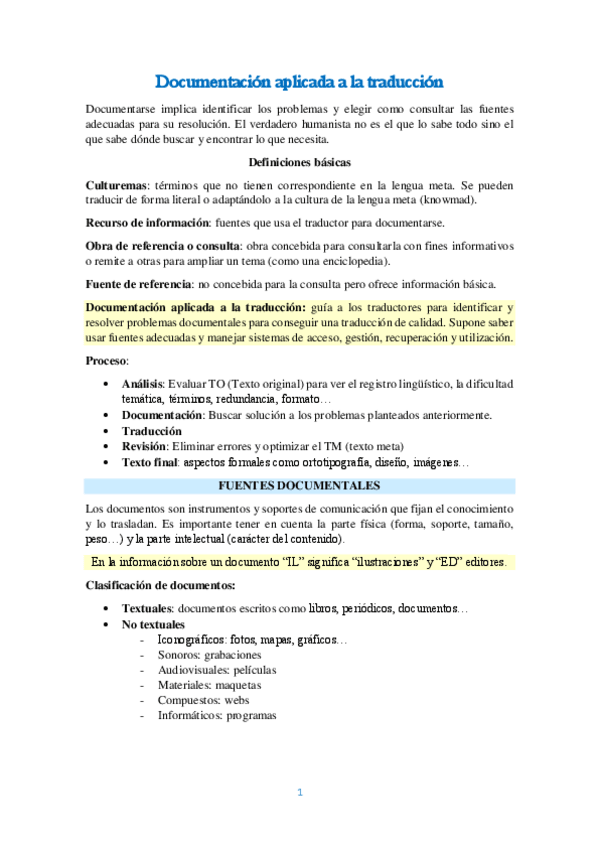 He publicado nuevos apuntes de 1º Documentación Aplicada a la Traducción: TEMA 1 DOCUMENTACIÓN.docx
