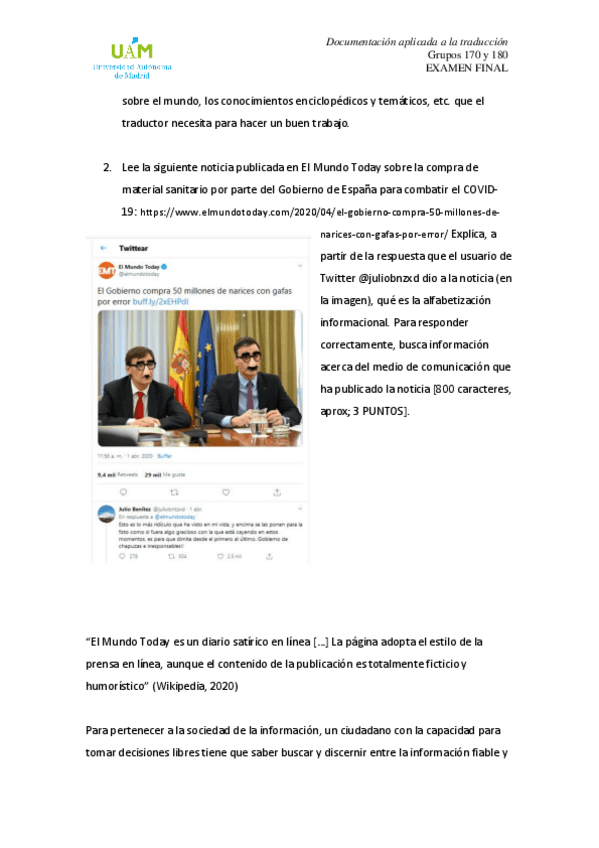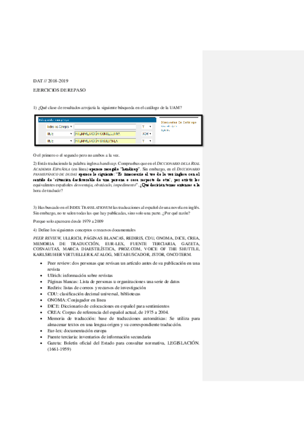 He publicado nuevos examenes de 1º Documentación Aplicada a la Traducción: Examen.pdf