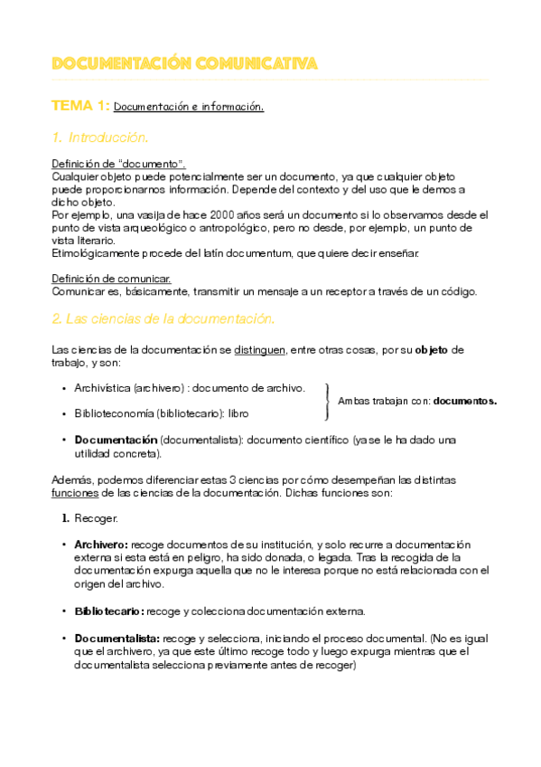 He publicado nuevos apuntes de 1º Documentación Comunicativa: Documentación