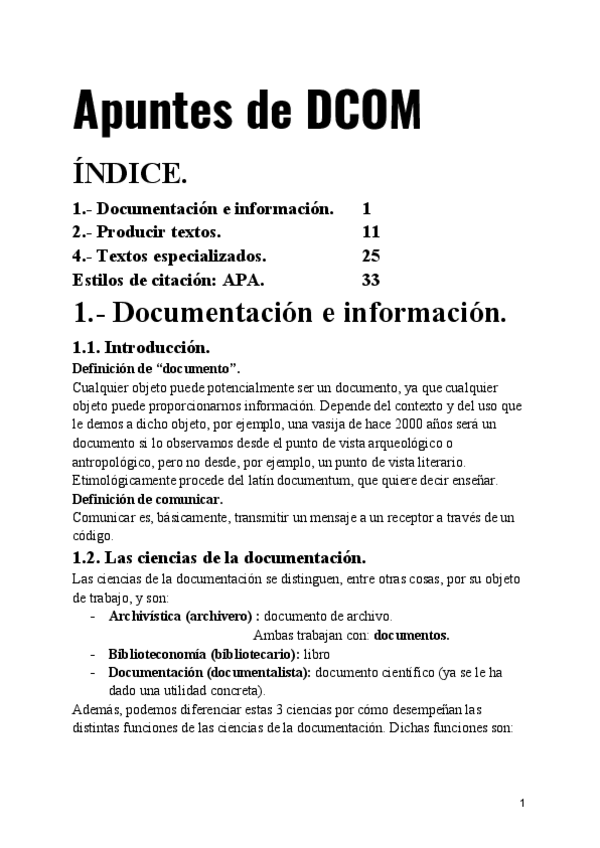 Apuntes bastante completos de los temas de Documentación Comunicativa. Incluye el estilo de citación de las normas APA y las definiciones de los conceptos esenciales del temario.
