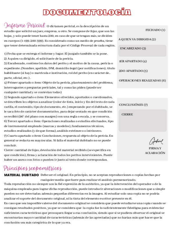 apuntes de informe pericial y leyes de la escritura