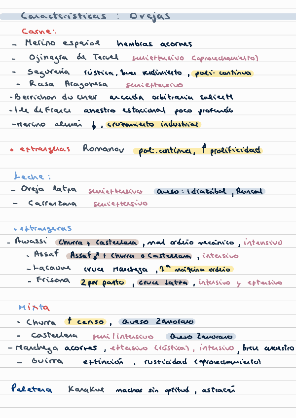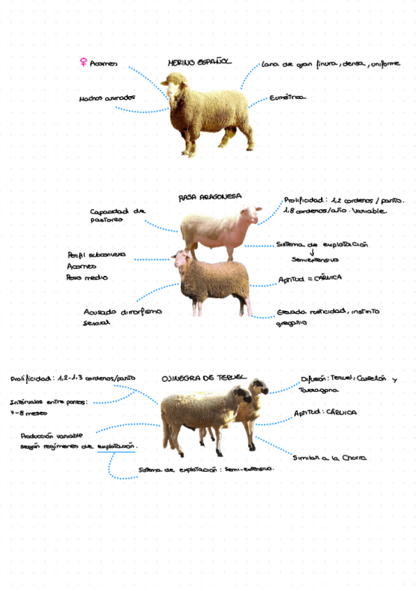 Apuntes de los temas de ovejas con características a destacar de cada raza
