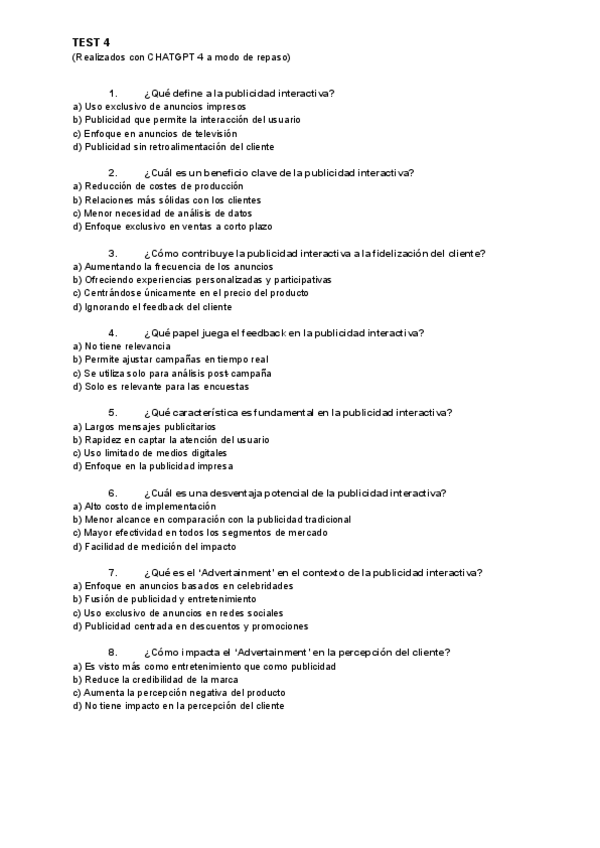Tipo test creados a modo de repaso con Chat GPT 4