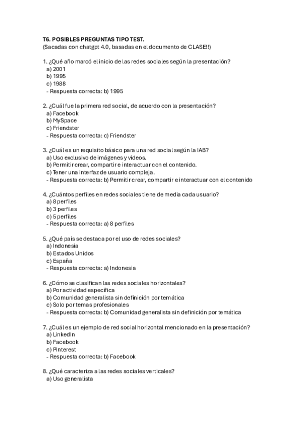 Tipo test creados a modo de repaso con Chat GPT 4