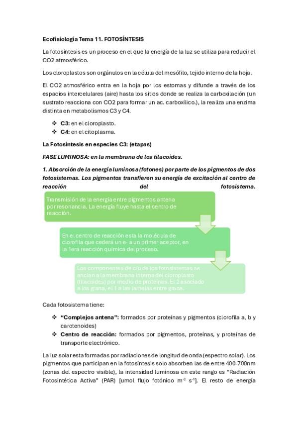 Ecofisiología, apuntes detallados con imagenes y esquemas. información de las diapositivas + información adicional dicha en clase, y explicaciones mas a fondo de ciertos temas para mayor entendimiento de las diapositivas. Bloque 2, temas 11-12