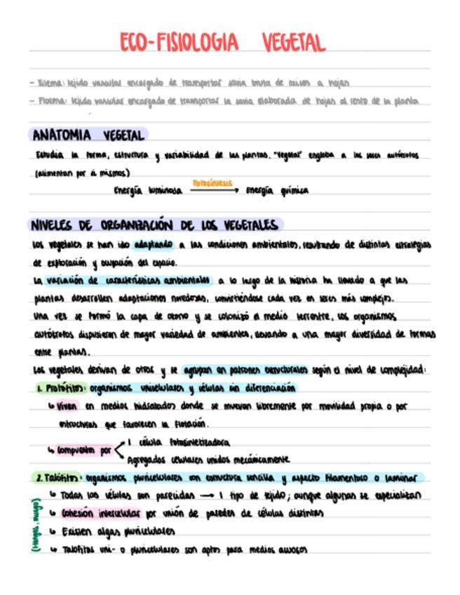 Apuntes completos del primer tema de Ecofisiología vegetal.